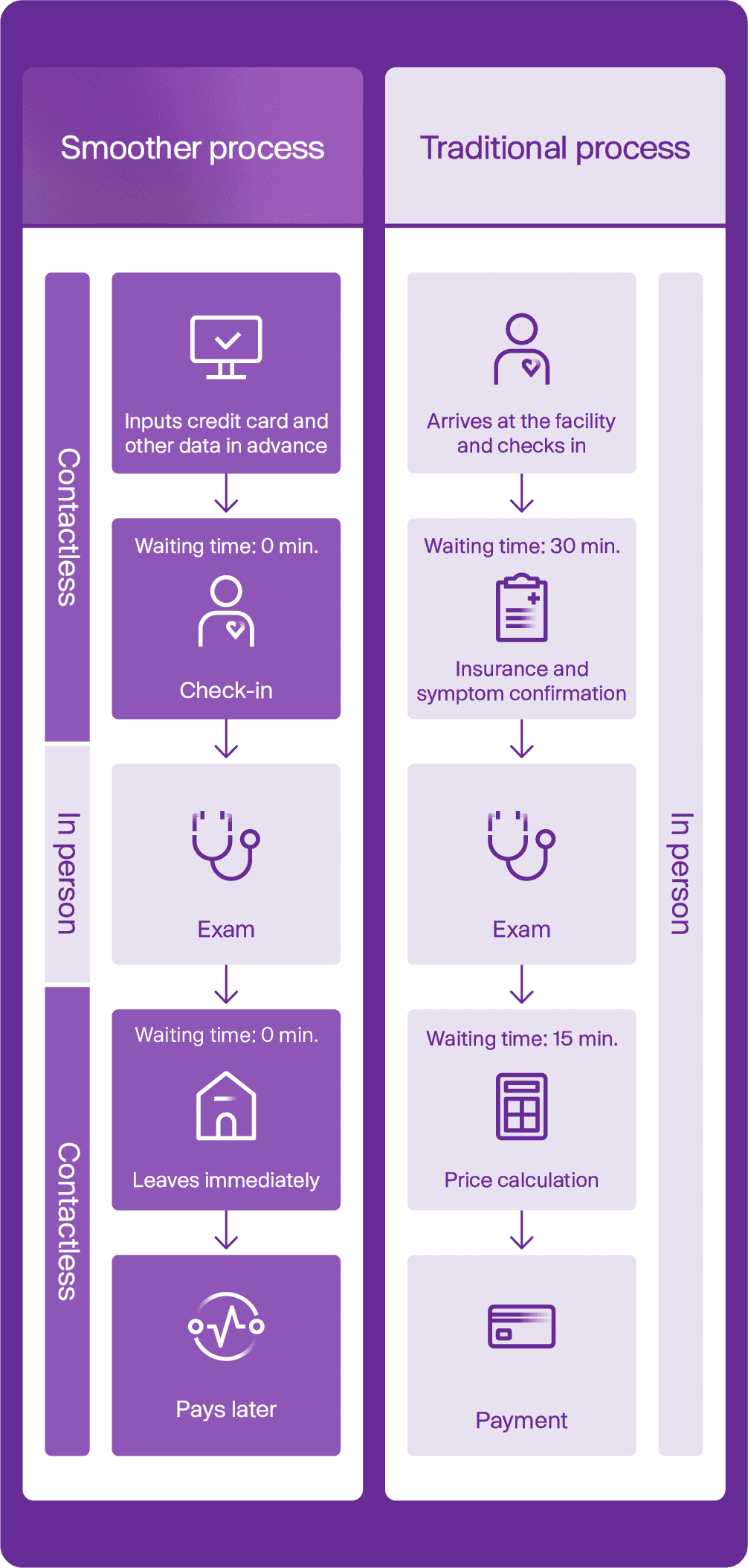 Despite these complex circumstances, more medical institutions are introducing new systems for taking advance reservations and automatic payments. This has also been spurred by the COVID-19 pandemic, when facilities had to avoid crowding and meet patient needs for contactless services, as well as increasing requests for remote services and automation.